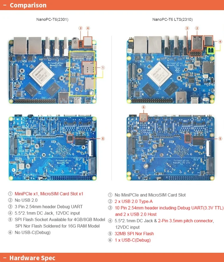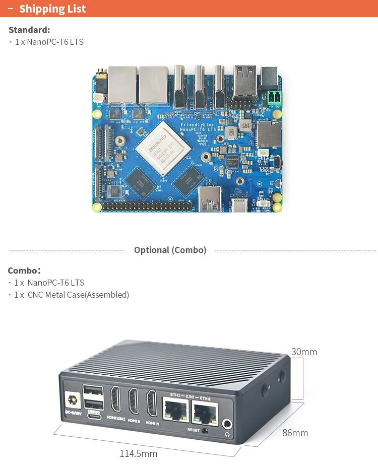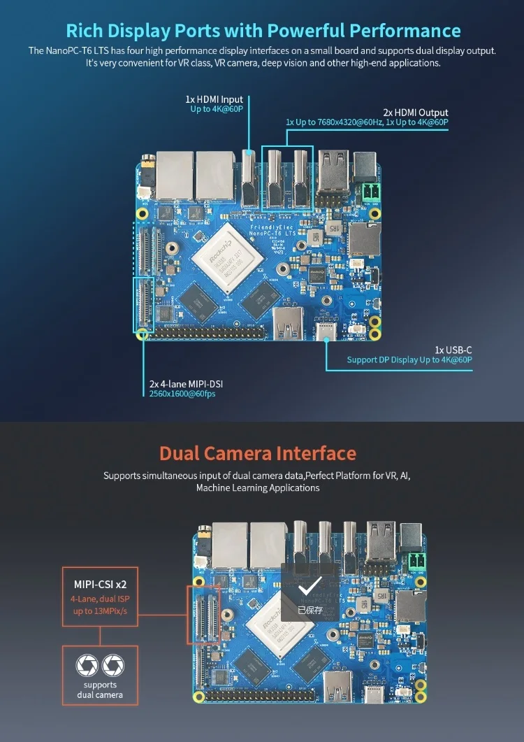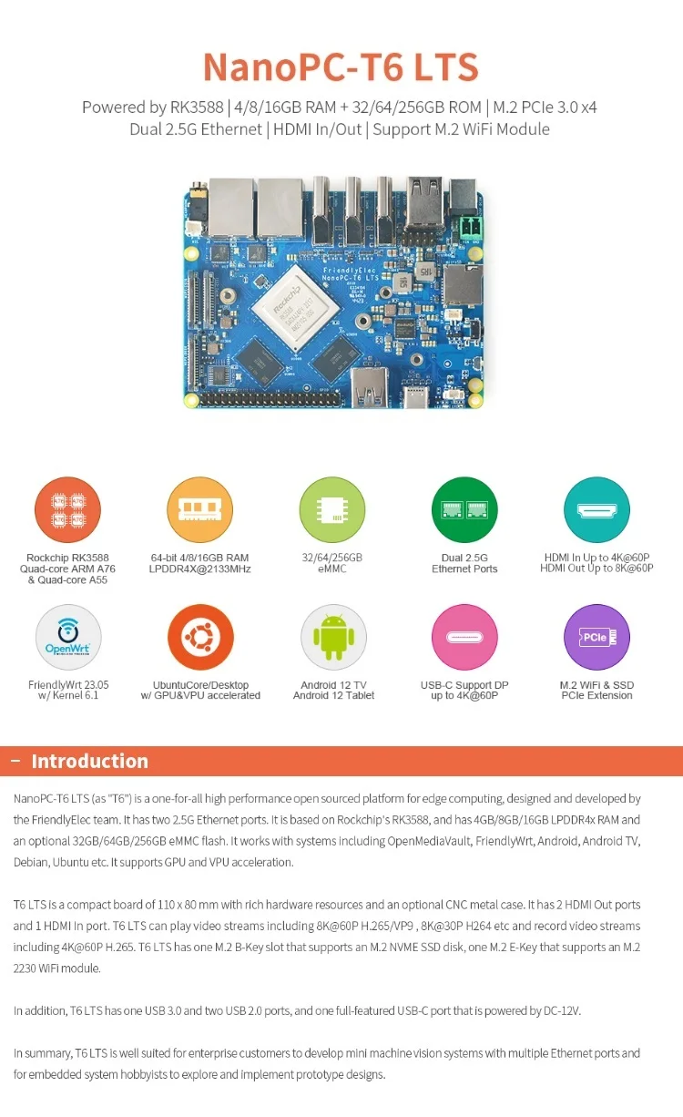 NanoPC-T6 LTS WiFi Router Rockchip RK3588 CPU 6Tops NPU 2.5G Dual Ethernet Ports Development Board for AI Edge Computing