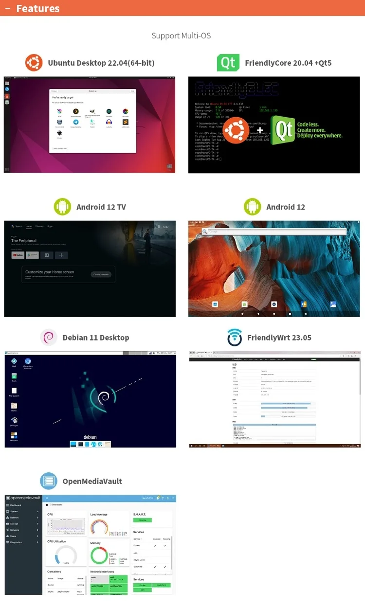 FriendlyWrt 23.05 OpenMediaVault Android 12 Tablet Android 12 TV FriendlyCore Lite 20.04 Debian 11 Desktop Ubuntu 22.04 Desktop Ubuntu 24.04 Desktop Proxmox VE Alpine-Linux |